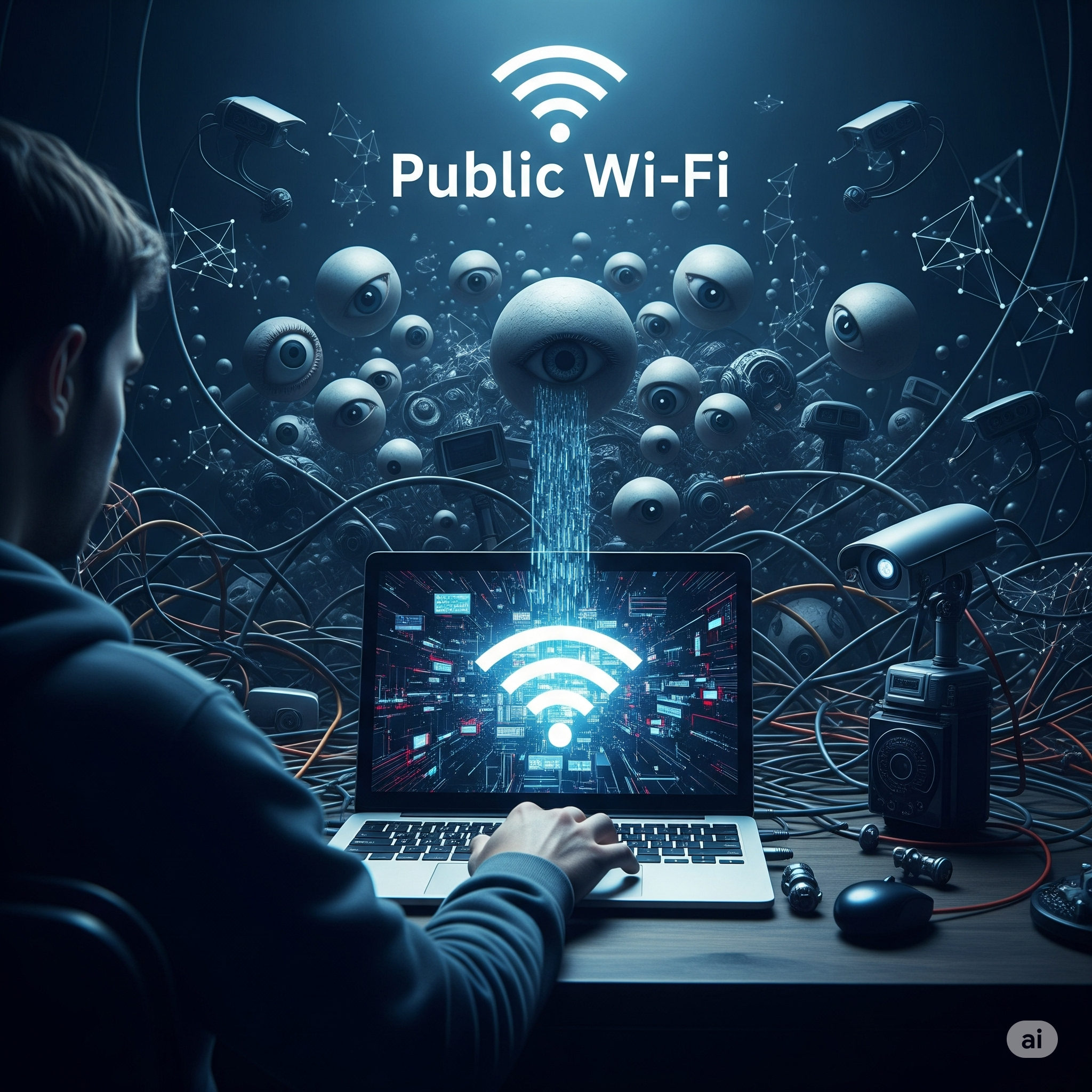 상상해 보세요. 누군가 당신의 집 앞에 ‘무료 현금’이 든 상자를 놓아두었다고 칩시다. 당신은 기뻐하며 상자를 열겠지만, 그 순간 당신의 모든 움직임, 얼굴, 심지어 지문까지도 어딘가에서 기록되고 있다면? 공공 와이파이가 바로 그 ‘무료 현금 상자’와 같습니다. 해커는 진짜처럼 보이는 가짜 와이파이(Evil Twin)를 만들고, 당신은 아무런 의심 없이 접속합니다. 그리고 그 순간, 당신의 모든 온라인 활동은 그들의 손바닥 안에서 실시간으로 감시당하기 시작합니다.